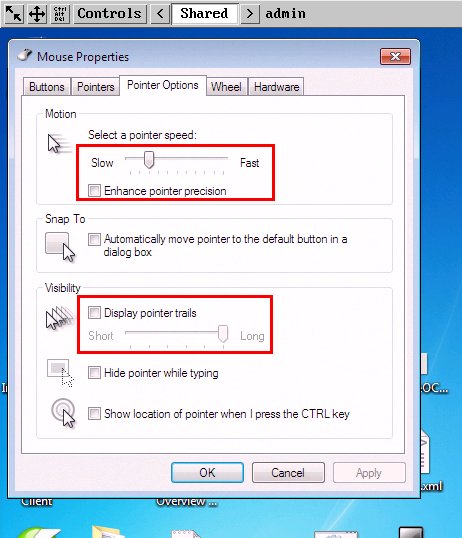 - Make sure that “Enhance pointer precision” and “Display pointer trails” options are OFF