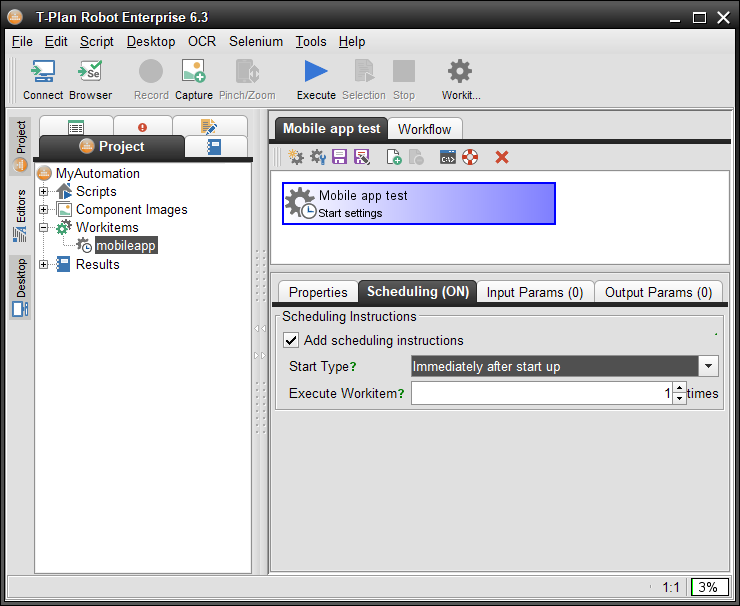 The Input Params tab defines optional parameters required to execute the workitem. These are exposed to workitem scripts in form of variables (see Variables document for the basics and the Var and Varg commands).