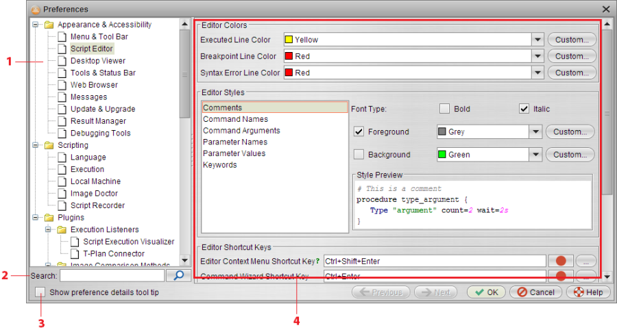 Preferences window provides access to T-Plan Robot Enterprise configuration. To open the window select Edit -> Preferences in the main GUI menu. Many T-Plan Robot Enterprise components also provide quick access to their configuration settings in context menus.