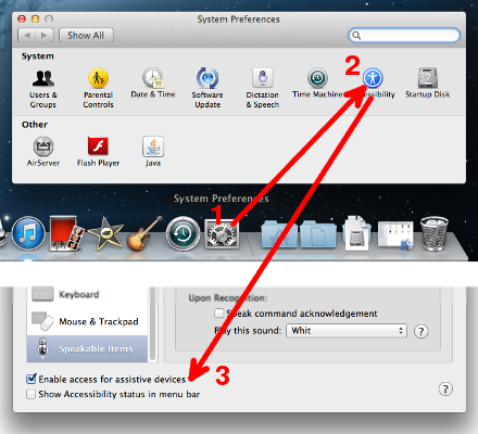 Enable accessibility - Mac OS X version less than 10.9.x (Mavericks):
