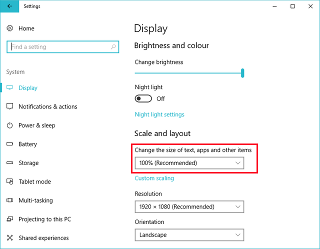 Open the Windows' Settings window and select the System→Display screen