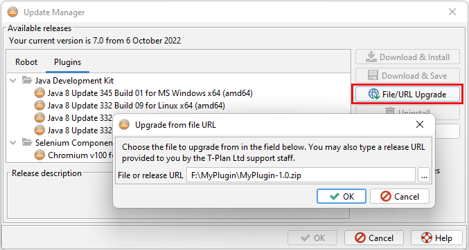 C:\Program Files (x86)\T-Plan\Robot> java -cp .\* com.tplan.robot.update.UpdateManager F:\MyPlugin\MyPlugin-1.0.zip