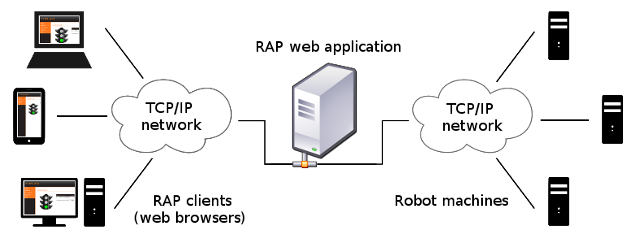 IMPORTANT: This document describes obsolete RAP2 connectivity which was removed in Robot v7. It is here for backward reference only. The feature was replaced with the RAP3 and RAP Agent products. |