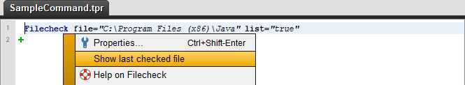 Right click the filecheck tree node in the project view and select Properties in the pop up menu
