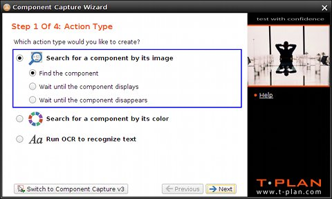 コンポーネントキャプチャ v4 は、3 または 4 つの簡単なステップでターゲットアクションを作成するウィザードを使用します。