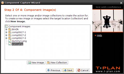 選択したアクションでテンプレート画像が必要な場合(たとえば、画像によるコンポーネントの検索 など)、ウィザードは コンポーネント画像 画面に進みます。この画面は、画像が既知の場合(例えば、プロジェクトビューの コンポーネント画像 ブランチに表示されている既存の画像や画像コレクションに対してウィザードが開かれた場合など)には表示されない場合があります。