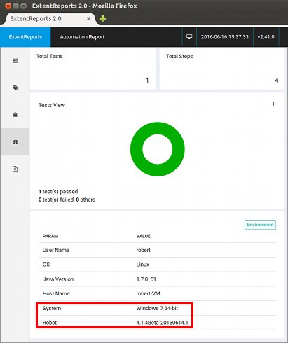 //プロジェクトディレクトリに保存されたプラグインをロードする。含む"../extent-plugin.jar"//StarttheExtentreport走る"com.tplan.extent.Report"desc="エクステント・レポート・デモ"ファイル"extentreport.html"名前「デモテスト// 作者、カテゴリー、ターゲットシステム、ロボットバージョンの設定走る"com.tplan.extent.Set"author=「ジョン・ドウcategory="回帰"param=「システム値「Windows 7 64ビット走る"com.tplan.extent.Set"param=「ロボット値"{_product_version_long}"// どのようにリンクされるかを示すために、ロボットレポートも開始します。レポート"results.xml"// いくつかの報告対象物を作成する// スクリーンショットスクリーンショット"myscreen.png"desc=「テストスクリーンショット// 合格と不合格のテストステップを1つずつ記録する。Step"テストステップ成功"passステップ"失敗したテストステップ"失敗//Exitwiththecodeof0つまり、総合的なPASSの結果はExit0