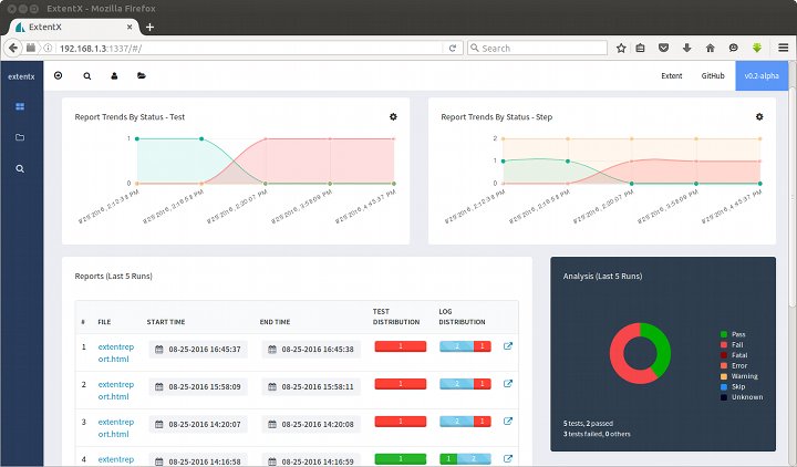 ExtentX v0.2がサポートされている。バージョン0.2.1は、このドキュメントの執筆時点(2016年8月)では不安定なExtent v3.0.0を必要とするため、サポートされていません。ExtentX 0.2.1+の統合にご興味のある方は、下記までお問い合わせください。Tプラン・サポートをご覧ください。