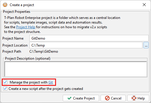 完了すると、RobotはGitリポジトリを次のように更新するかどうかを聞いてきます。一時ファイルを無視する.これには通常、レポート、Image Doctor レコード、コンパイルされた Java クラス、バックアップファイルなどの実行出力が含まれます。また、ロボットはプロジェクト記述子tprproject.xmlセッションごとに更新されるからだ。