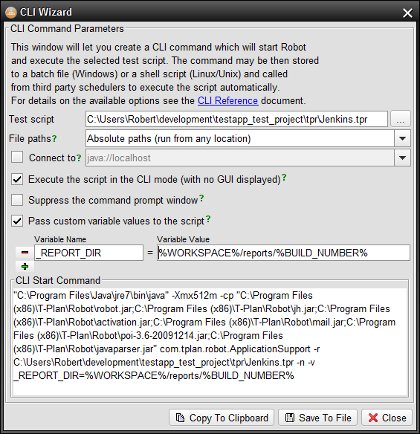 CI統合に適した開始コマンドを作成するには、 CLIウィザードツール。起動するには選択してくださいツール->CLIウィザード とロボット: