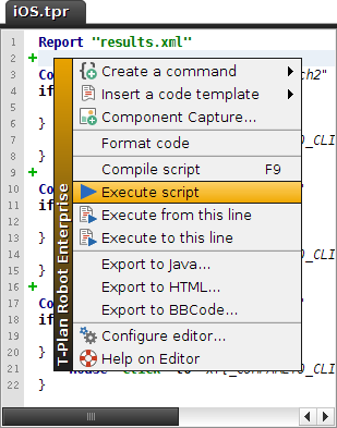 public static void main(String args[]) throws ParserConfigurationException, SAXException, IOException { ApplicationSupport robot = new ApplicationSupport(); com.tplan.robot.scheduler.Schedule schedule = new com.tplan.robot.scheduler.Schedule(); schedule.read(new java.io.File("<path_to_workitem_XML>")); AutomatedRunnable t = robot.createAutomatedRunnable(schedule, "Example" , new String[] {}, System.out, true); new Thread(t).start(); }