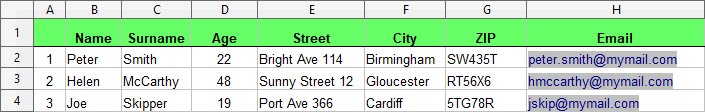 行番号はスクリプト内でROWという変数を通じて指定されます。この設計により、-v/-variable CLIスイッチを使用して外部から行(すなわち人物)を設定することが可能になります。また、拡張も容易です。別の人物を登録するには、個人データを記載した新しい行をシートに追加し、その新しい行を扱う別のタスク(スクリプト実行)を作成するだけです。