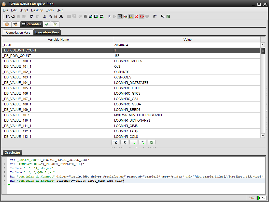 SQL SELECT ステートメントを使用してデータを照会するには、com.tplan.db.Execute スクリプトを使用します。結果のデータは、変数の形で呼び出し元のテストスクリプトに公開されます: