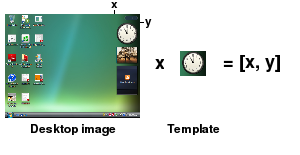 このアルゴリズムは、いくつかの許容レベルを提供します。最初のものは、コマンドで提供される通過率パラメータです。デフォルト値の100%はピクセルの完全一致を検索します。より低い合格率の値は、異なる可能性のあるピクセルの相対数を定義します。例えば、テンプレートが 10x10 (=100pixels) で、パスレートが 95% に設定されている場合、このメソッドはテンプレートのピクセルと少なくとも 95 ピクセルが一致するすべての領域をデスクトップ画像から検索します。