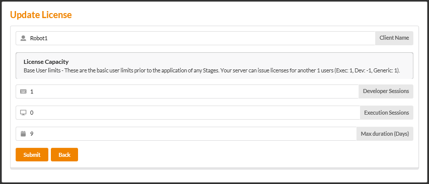 Selecting to Edit a license will present you with a window similar to that when creating a license, which will allow you to amend all aspects of an existing license: