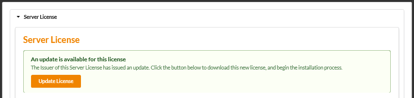 Unless you are using an "offline License Server" it will periodically communicate with its parent license server in order to confirm its validity and also to check for updates. If any updates are available you will be prompted at this page as follows: