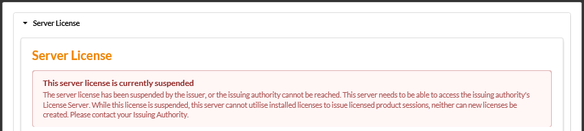 If your License Server is suspended for any reason you will be notified at this page, as follows: