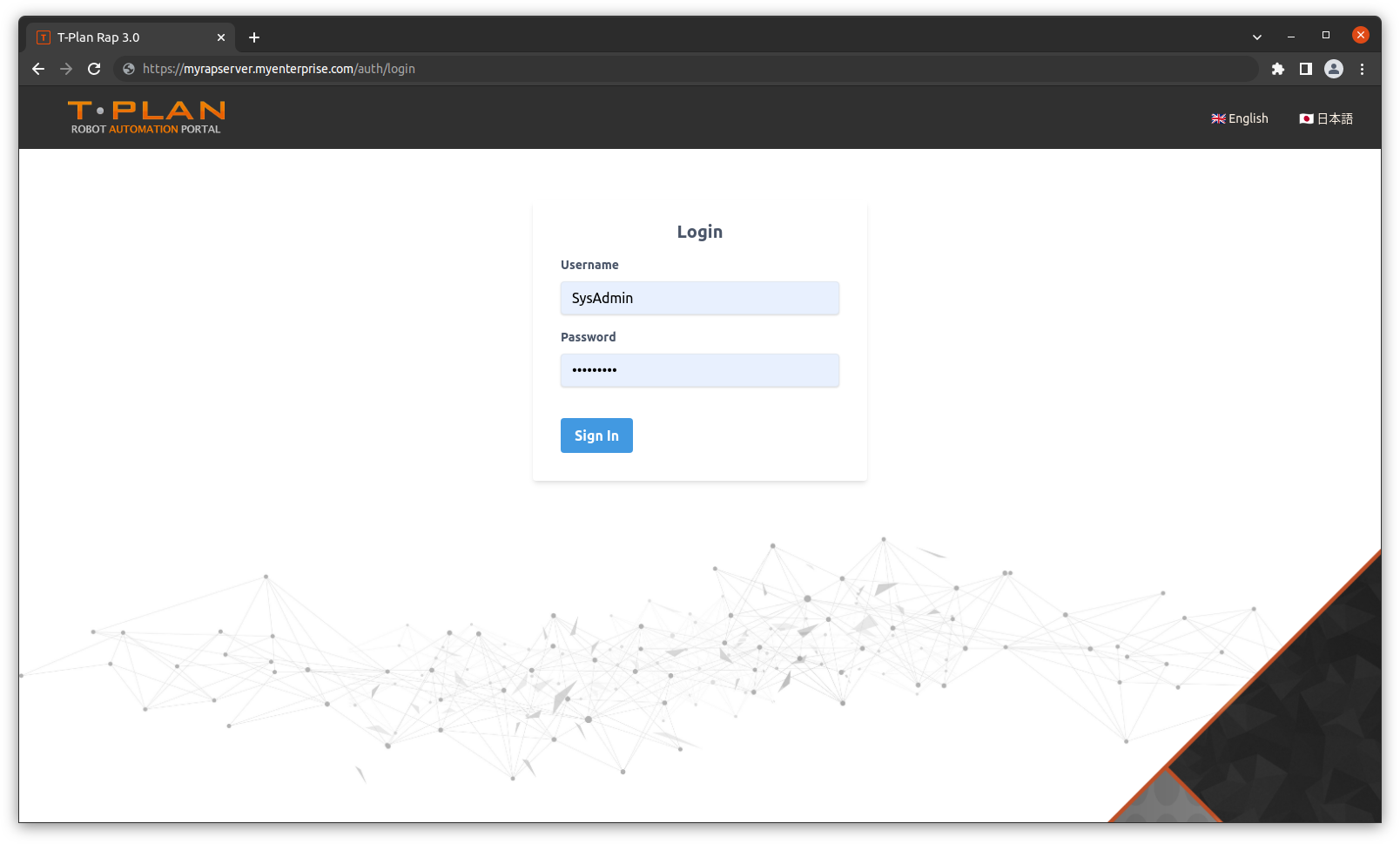 You should now be able to log into RAP. Navigate to the Portal URL. In this example, it's at https://myrapserver.myenterprise.com/.